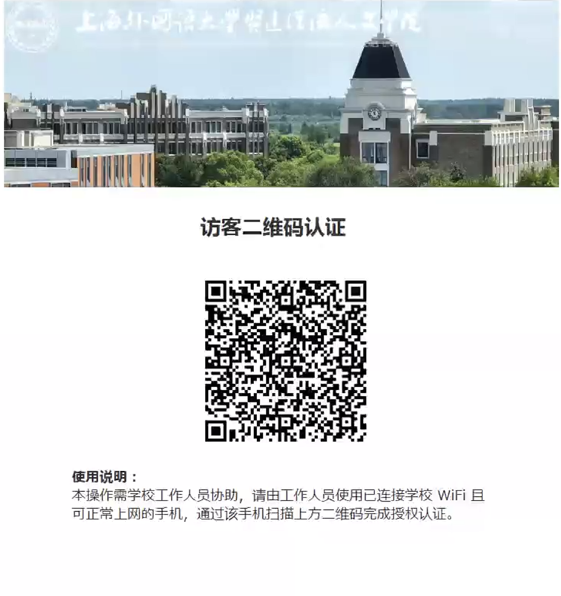 (2)来访嘉宾终端连接无线网络XDSISU-Guest后,终端会自动弹出二维码认证页面,如下所示。